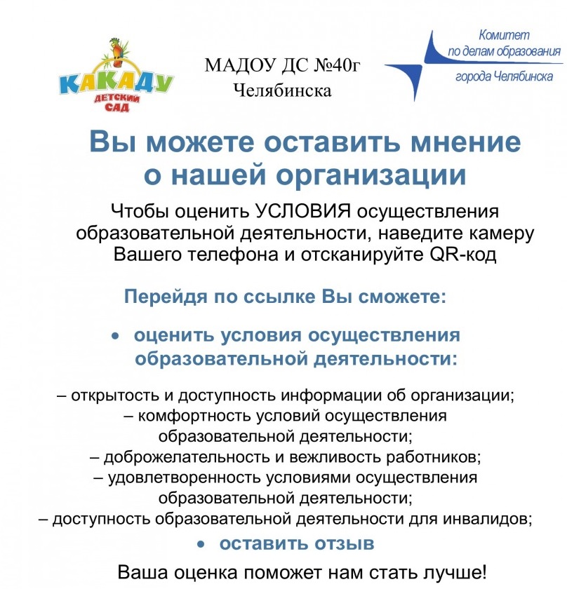 Мы рады приветствовать вас на официальном сайте Муниципального автономного дошкольного образовательного учреждения «Детский сад № 40 г. Челябинска Какаду». Здесь вы можете найти официальную информацию о деятельности Детского сада № 40 «Какаду»
